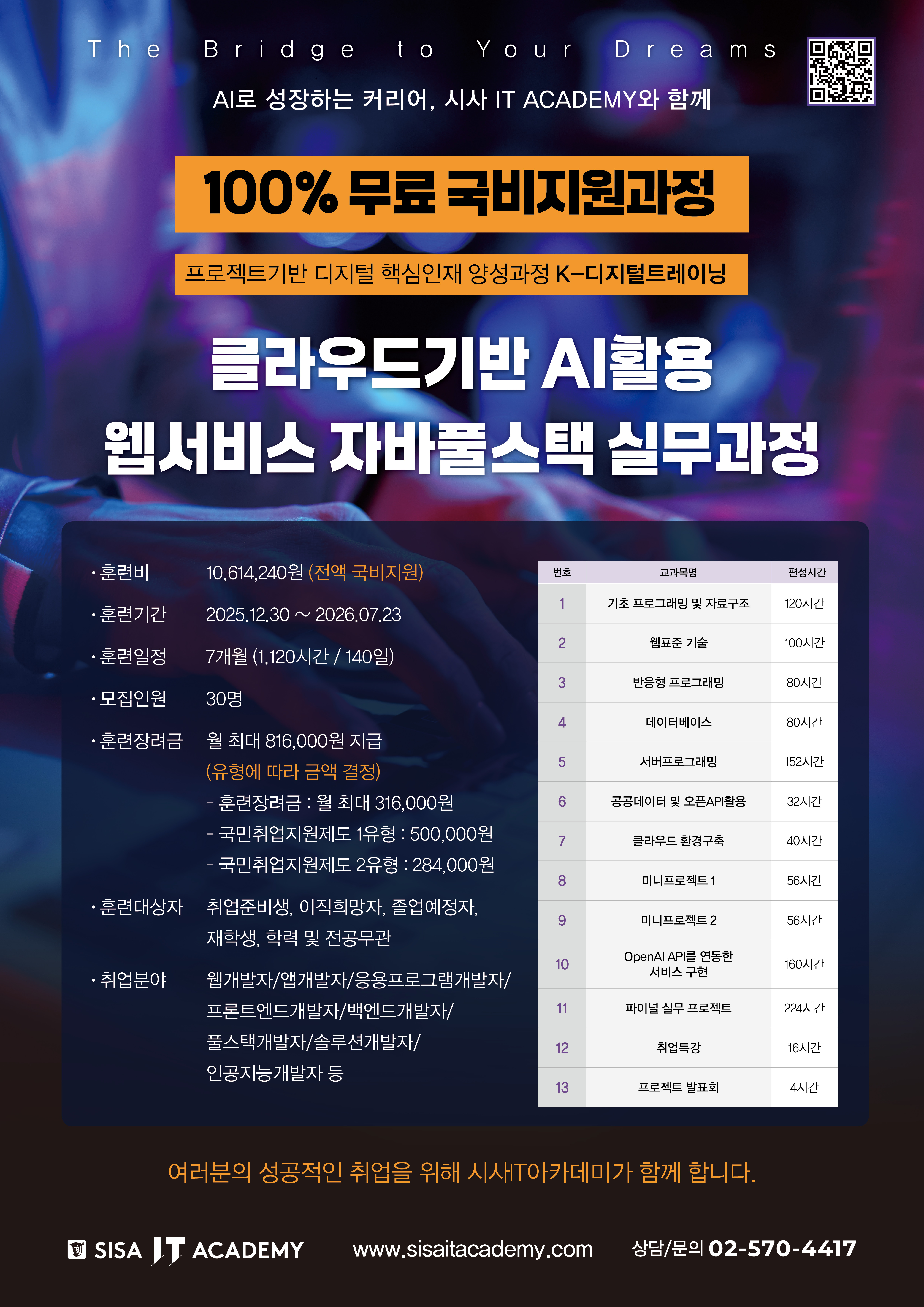 [시사IT아카데미] 2025년 12월 개강 KDT 과정 모집 안내