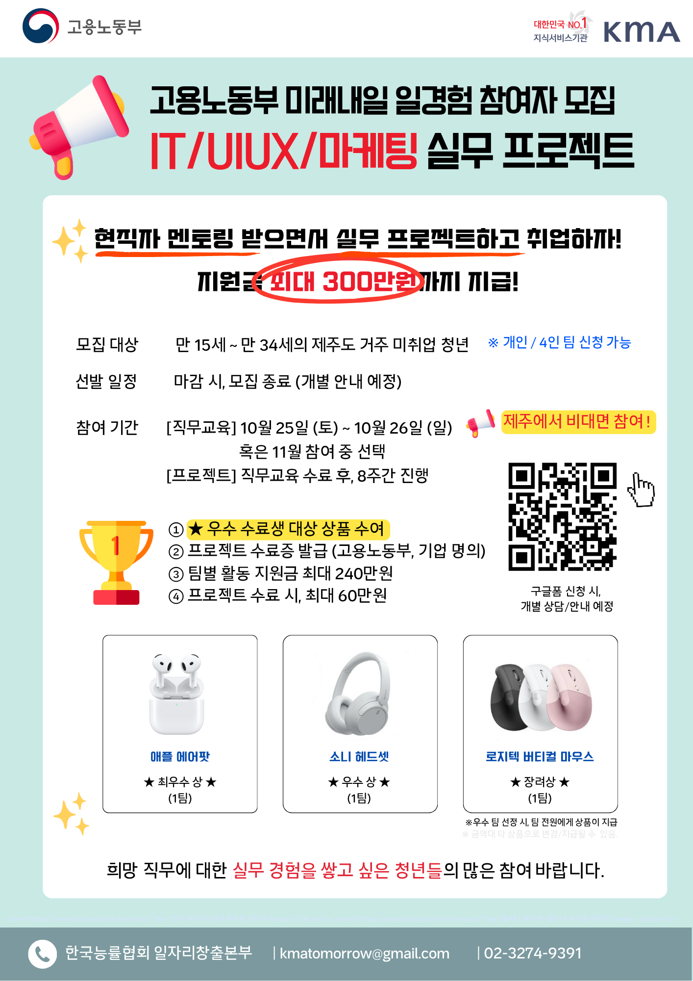 고용노동부 미래내일 일경험 - 제주 거주 만 15세-34세 미취업 청년 대상 실무 프로젝트
