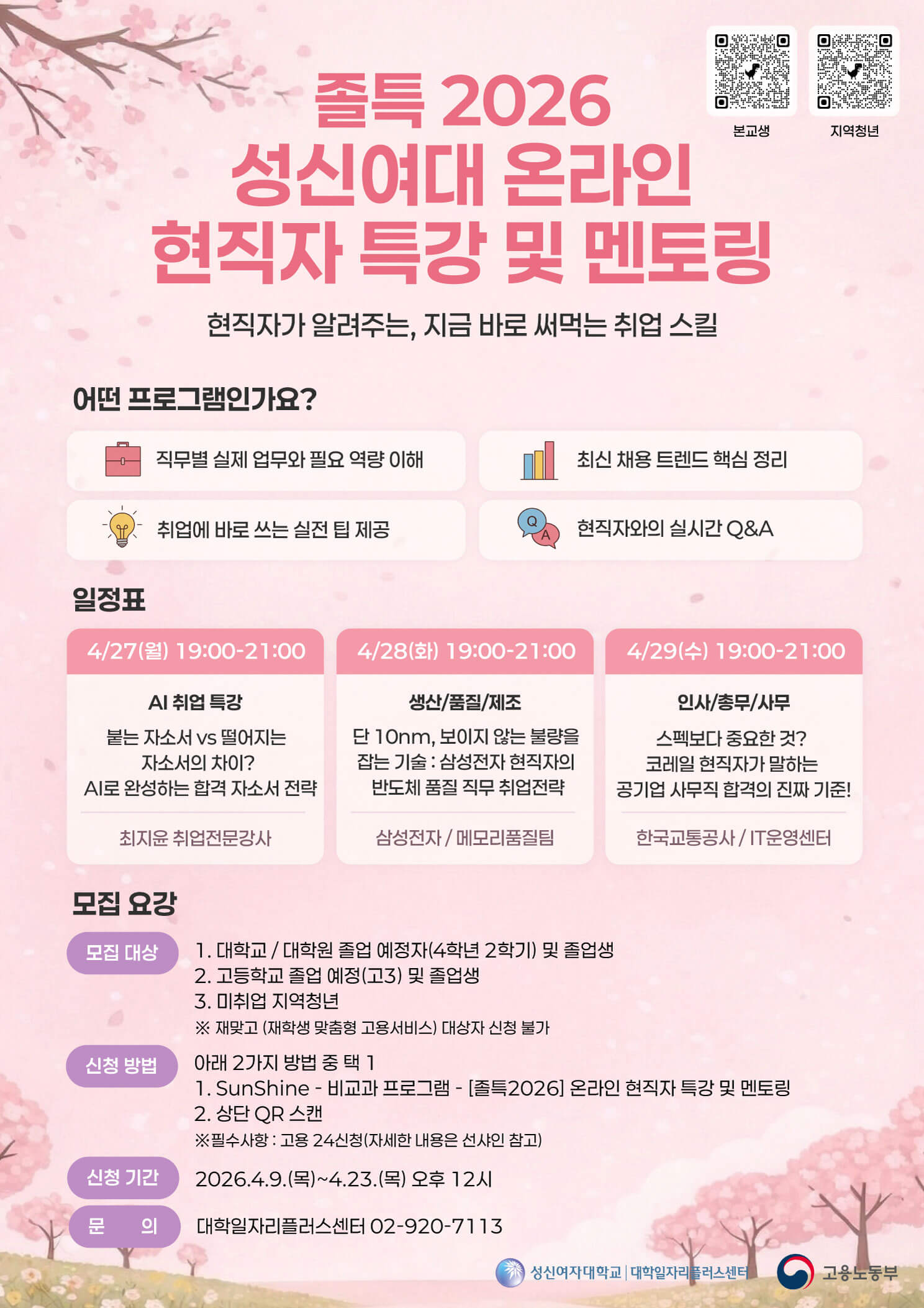 [¼º½Å¿©ÀÚ´ëÇб³-Á¹¾÷»ýƯÈ] 2026Çг⵵ ¿Â¶óÀÎ ÇöÁ÷ÀÚ Æ¯° ¹× ¸àÅ丵(4¿ù) ¸ðÁý