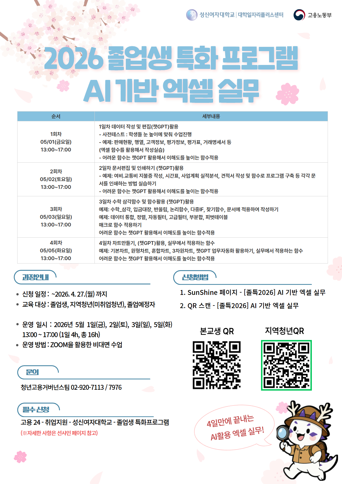 [¼º½Å¿©ÀÚ´ëÇб³-Á¹¾÷»ý ƯÈ] 2026Çг⵵ AI±â¹Ý ¿¢¼¿ ½Ç¹« ¸ðÁý